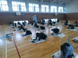 書き初め大会では、最後まで集中して取り組むことができました。