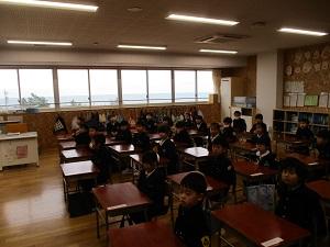 3学期が始まりました。始業式では,よい姿勢で真剣に話を聞くことができました。一生懸命に書き初め大会を頑張っていました。