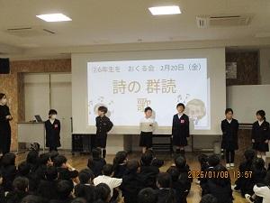 また、6年生を送る会で行う季節の詩の群読を行いました。