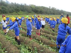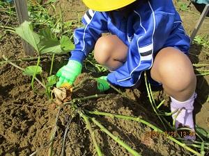 5・6時間目の生活科の時間に、春に植えたかほっくりの収穫を行いました。