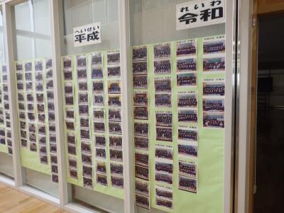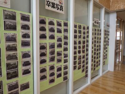 歴代卒業生の写真や地域企業の製品紹介、唐仁屋三郎兵衛の紙芝居などがあります。