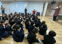ボイストレーナーの堀江小綾先生と城治先生をお招きして、送る会で歌う歌を練習しました。