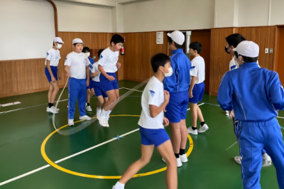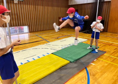 開脚跳びだけでなく、閉脚跳びも教えてもらい、子どもたちは「できた!」と嬉しそうにしていました。