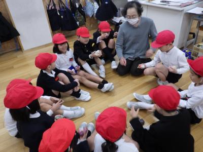 今回は冬にちなんだ手遊びがあり、お餅の数え歌にも親しんでいました。