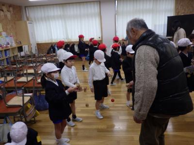 地域の方10名をお招きして、1年生が昔遊びを楽しみました。