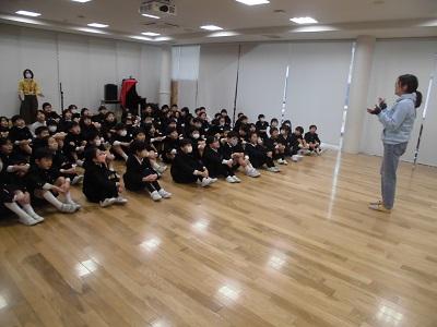 ↓多目的室では1年生を中心に楽しそうに聞いていました。