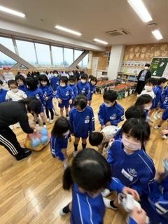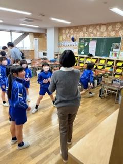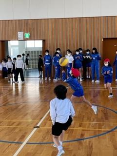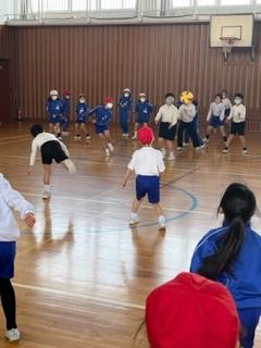 4年生の体育の時間に、3年生が8の字跳びの秘密を学びに来ました。