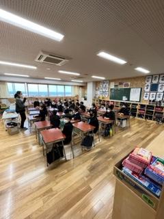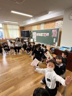 1年生の外国語活動の時間に、クリスマスに関係のある英単語で椅子取りゲームをしました。