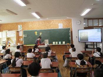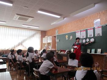 5限目の国語の時間に、学校図書館司書の西永先生によるブックトークが行われました。