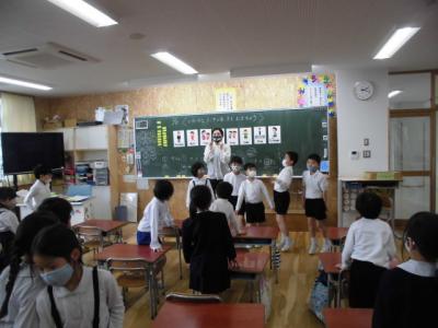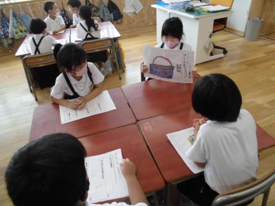 町たんけんでみつけた面白いものを、みんなに分かりやすく発表していました。