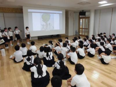 学年登校日に、平和についての絵本の読み聞かせをしました。