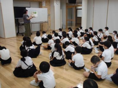 子どもたちは戦争や平和について考えながら、しっかりと聞いていました。