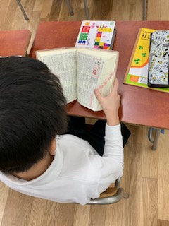 ⇒どのページを音読してもよい。3回ずつ読む。*音読カードに書く。⇒新しく2まい配りました。