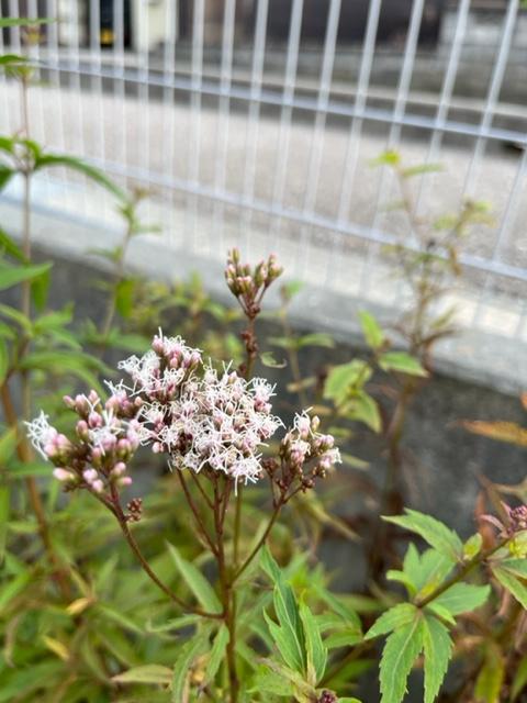 学校の花壇やプランターで育てているフジバカマが花を咲かせ始めました。