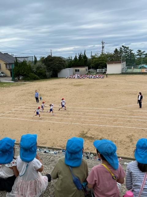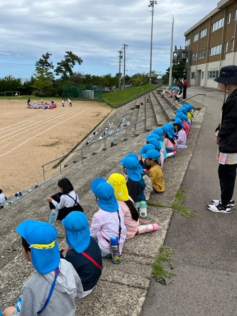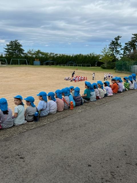 今日の34限目に、しらゆり子ども園とひまわり子ども園の園児の皆さんが、運動会の練習を見に来てくれました。