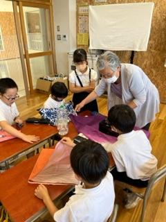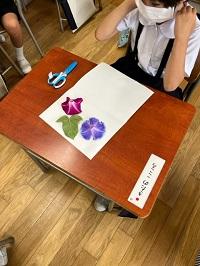 教室では、その花の汁を使ってアサガオの絵に色を付けていました。
