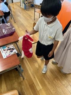 3年生が道徳の時間に、風呂敷の魅力を学びました。