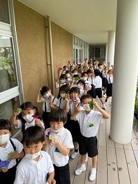 熱中症対策として、運動場での激しい運動はできませんが、プールの授業は順調に進んでいます。