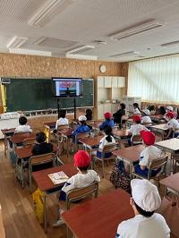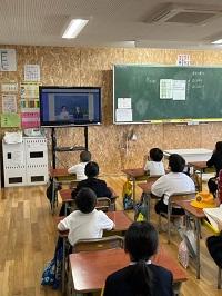 コロナ対策のため、体育館での集会ではなく、ビデオによる放送にしました。