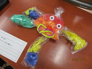 袋の中にお花紙を詰めたり、毛糸やモールで縛ったりしてすてきなお友達を作りました。