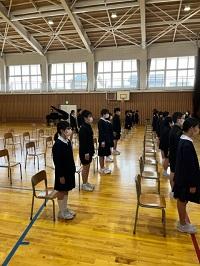 本日の午後、5・6年生で卒業式の予行を行いました。