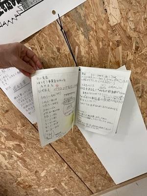 廊下前には、記録ノートや日程表が掲示され、毎日更新されています。