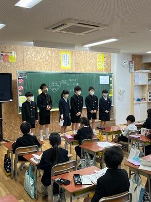 今日の朝自習の時間に、5年生が各クラスに訪問し、