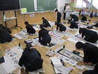 本日の2・3限目に、全校一斉に書き初め大会が行われました。
