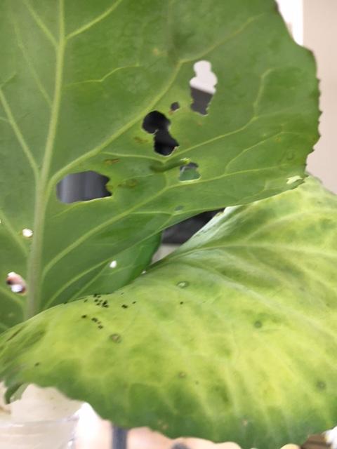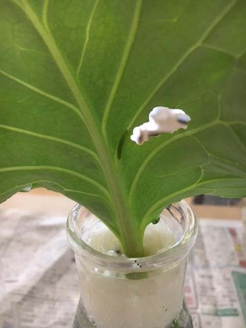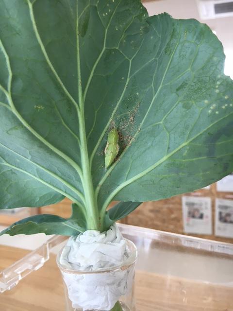 10日前に3年生が、キャベツからたくさんのモンシロチョウの卵を見つけました。