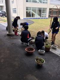 地域の方に育てていただいたフジバカマを中心に、自分の鉢に移植しました。
