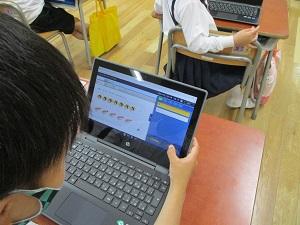 算数の数の勉強でしたが、タブレットPCを上手に使いながら、問題を次々と解いていました。