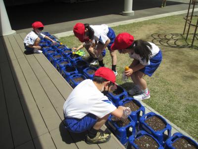 あさがおの種を植えたよ 投稿日時 : 2022/05/10 soto17 生活科「げんきにそだて わたしのはな」では、一人ひとりが朝顔を育てます。 朝顔の種の色や形を目で見たり、さわったりしてじっくり観察しました。 大切に育てたいな、どんな色の花が咲くか楽しみ、早く大きくなってねと 朝顔への思いを持ち、どの子も大事そうに種を植えることができました。 毎日、水やりをして観察するのが楽しみですね。 Tweet {{options.likeCount}} {{options.likeCount}} 0 コメント