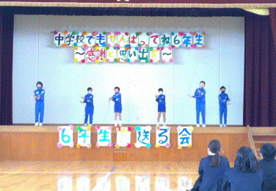 昨日2月19日、6年生を送る会がありました。6年生は委員会活動やなかよし活動など、さまざまな場面で学校を引っ張っていってくれました。その感謝を本番で伝えられるよう、協力して練習を積み重ねたり、準備をしたりしてきましたね。3年生は「リズムなわとび」の出し物をしました。曲のリズムに合わせてグループでそろえて跳ぶことを意識しました。