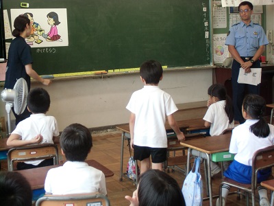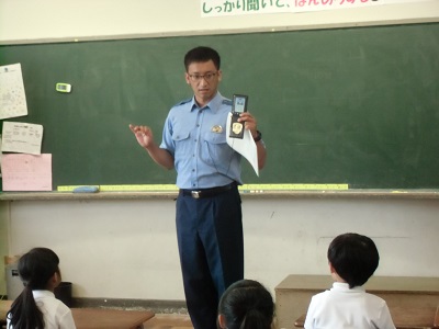 そう 今日の講師は先週、不審者対応訓練で不審者役をして下さった津幡署の警察官の方でした。