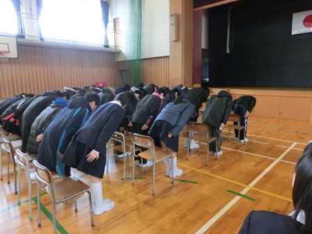 6年:卒業式練習開始 投稿日時 : 2016/03/01 soto1 今日の5限目に、6年生が体育館で、卒業式練習を行っていました。いよいよ始まりました。まずはいすの座り方、立ち方、姿勢について、説明を受け練習を行っていました。指先まで神経が行き届いていて、とてもきれいな姿勢の子を見つけうれしくなりました。礼の腰から背中のラインと角度がポイントですね。木曜日からは在校生の練習も始まります。 Tweet {{options.likeCount}} {{options.likeCount}} 0 コメント