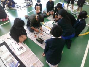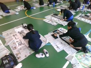 5年生 書き初め練習 投稿日時 : 12/09 soto6 ゲストティーチャーを招いて、書き初め練習をしました。 お手本を見た後、新聞紙と半紙に練習しました。 Tweet {{options.likeCount}} {{options.likeCount}} 0 コメント