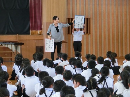 生活についてのお話では、「外小をあいさつの花で満開に」という昨年からの行動をもっとレベルアップしようというお話でした。