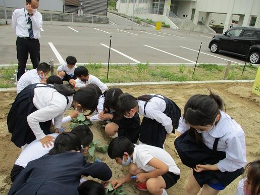 モンシロチョウ 投稿日時 : 2021/05/10 soto1 3年生の理科では、モンシロチョウの学習をしています。 今日は、学校の畑に育てているキャベツを観察に来ました。 みんなで、モンシロチョウの卵を探しています。 「あった、あった」「見つけた」の大歓声。 オレンジ色の小さな卵をたくさん発見していました。 本物と触れ合うって素敵です。 Tweet {{options.likeCount}} {{options.likeCount}} 0 コメント