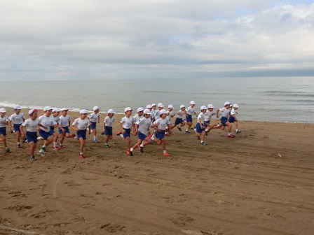 昨日、マラソン大会が外日角海岸で行われました。曇り予報で、暑くもなく寒くもなく、絶好のマラソン大会と思われたのですが・・・急に黒雲が出現し、5年生は大雨の中の力走、6年生はやむなく今日に延期されました。雨は止んでも、排水溝から流れ出る水が砂を削り大きな川のような状態となりできなくなりました。一昨年も高学年の時に大変な雨風となったのですが、川ができる心配は、あまりありませんでした。コンクリートが多くなり、一気に流れ出る水の量が大量になったからでしょうか。自然の様子が変わってきているのを実感します。何はともあれ、子どもたちは、どの子も大変よく頑張りました。苦しくても最後までやる抜くことの大切さを、子どもたちが見せてくれました。(PTAだよりのコーナーにも紹介されています。)