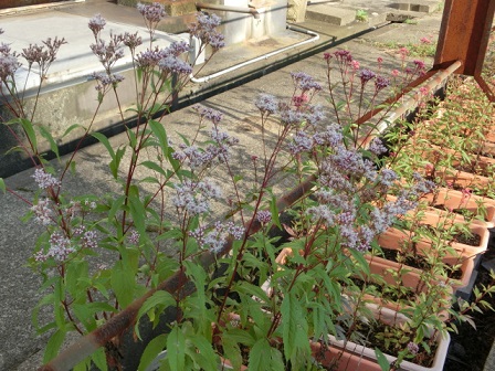 生き物大好きクラブにも書いたのですが、昨日の午後、中庭のフジバカマの様子を見に行ったところ、一頭の蝶を発見。なんとアサギマダラ!!水色の羽がとても美しかった!!先日、新聞の記事で小松の住宅地にもアサギマダラが飛来したことを知り、昨年、5年生がたくさん植えたフジバカマにも、「こないかなあ」と思っていた矢先でした。秋晴れの良い日が続き、枯れていないかと思い見に行き、ジョーロで水をやったのでした。水を急にかけたので驚いて、ひらっと舞い上がり、その後中庭をひらひら飛んで、校舎を超えて行ってしまいました。デジカメを持っていなかったことが悔やまれます。中庭のフジバカマは、今週見頃を向かえます。今度会えるのを楽しみにしています!