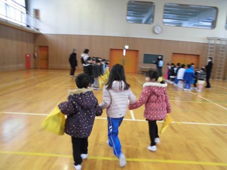 1年生から名前を呼ばれると、年長さんはとても嬉しそうに手をつないでくれていました。
