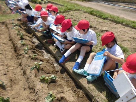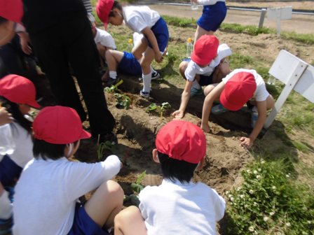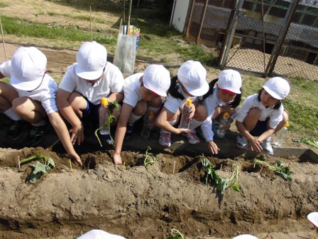 畑の先生の中村さんに教えてもらいながら、心をこめて植えました。