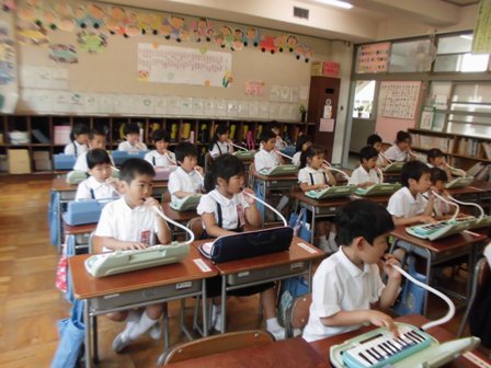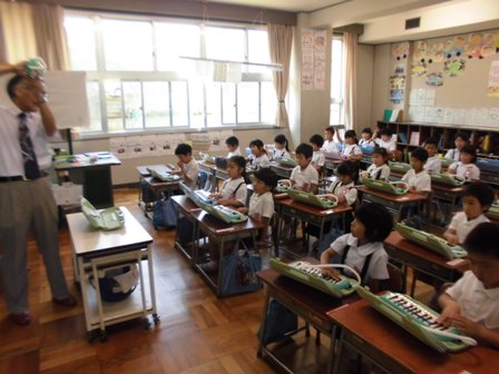 講師の先生に鍵盤ハーモニカの使い方を楽しく教えてもらいました。