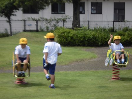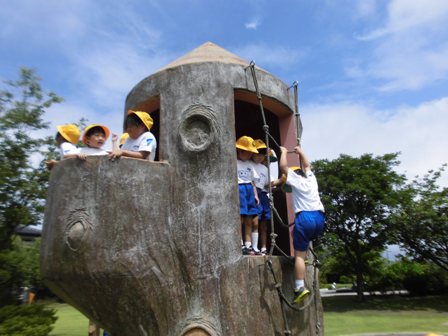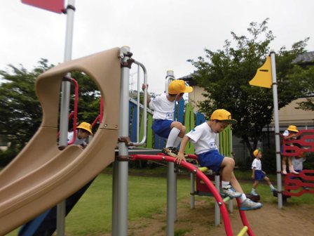 しらゆり公園ではおにごっこや遊具で遊び、みんな汗だくになって遊んでいました。