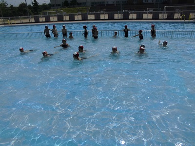 やっと入った水の中。冷たいけど気持ちいい!お互いに水を掛け合ったり、ワニさんで移動したりしました。水に入れたのはとても短い時間だったけど楽しんでいました。これからのプールが楽しみです。体育が安全に楽しい時間になればいいと思います。