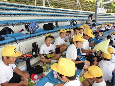 おいしいお弁当の準備ありがとうございました。子どもたちはニコニコうれしそうに食べていました。愛情弁当をうれしそうに見せてくれた子どもたちでした。