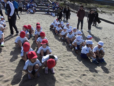 みんながんばって走っていました。海岸はとても走りにくいんです。