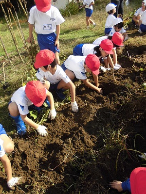 今日、さつまいもほりをしました。5月に植えたさつまいも。どれだけ大きく育っているかとても楽しみにしていた子どもたちです。