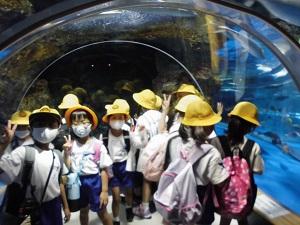 のとじま水族館へ行ってきました。国語の学習「うみのかくれんぼ」のように海の生きものがどのようにかくれているのか、海にはどんな生きものがいるのかを見つけてきました。イルカショーも見てきました。イルカの高いジャンプに驚いていました、