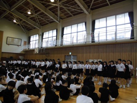 全校集会で音読発表があり、「寿限無」と「いきいき生きる」を音読しました。声の大きさ・姿勢・声をそろえるの3つをめあてにして練習を重ねてきました。本番では、どの子も一生懸命がんばり、満足した表情をしていました。